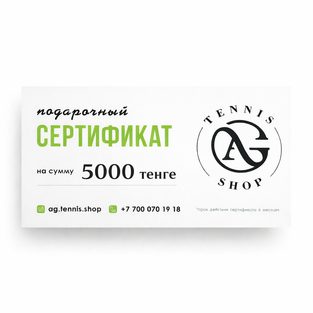 В AG Tennis Shop вы получаете оригинальный подарочный сертификат с гарантией подлинности. Удобный онлайн‑заказ, быстрая доставка по Казахстану и внимательный сервис делают процесс покупки лёгким и приятным. Сертификат на 5000 тенге — это возможность подарить радость, удобство и свободу выбора для каждого поклонника тенниса, позволяя приобрести качественные товары и аксессуары, которые действительно нужны.
